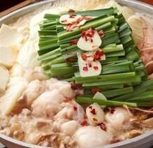 当店人気の醤油ベースのもつ鍋。新鮮で濃厚なぷりぷりもつ鍋、一度ご賞味あれ!!
